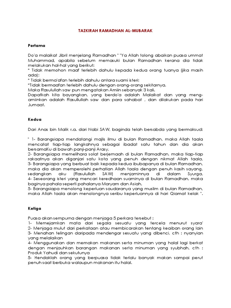 Doc Tazkirah Ramadhan 1438 Mat Idris Zainalabidin Academia Edu