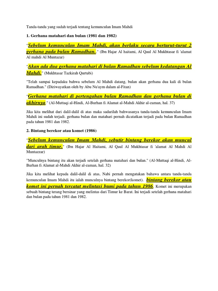 Bacalah Sumber Aslinya Di Kitab Yang Direferensikan Agar Tidak Tersesatkan Oleh Internet Tanda Tanda Yang Sudah Terjadi