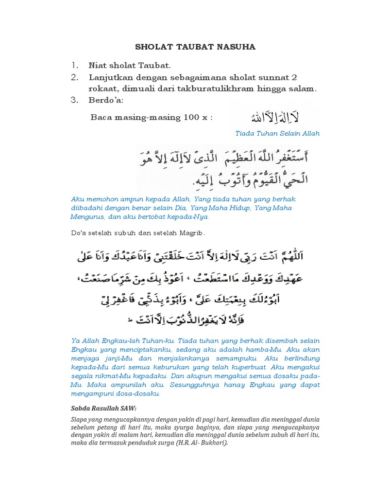 Kata taubat berarti kembali kepada Allah swt serta berjanji tidak akan mengulang kembali dosa yang. Ustadz kami ingin bertanya bagaimanakah cara sholat Taubat Sholat Hajat Sholat Tasbih. Amiin Yaa Mujibas Saailin.
