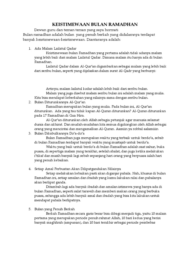 Teks Ceramah Tentang Keistimewaan Bulan Ramadhan Berbagai Teks Penting Cute766