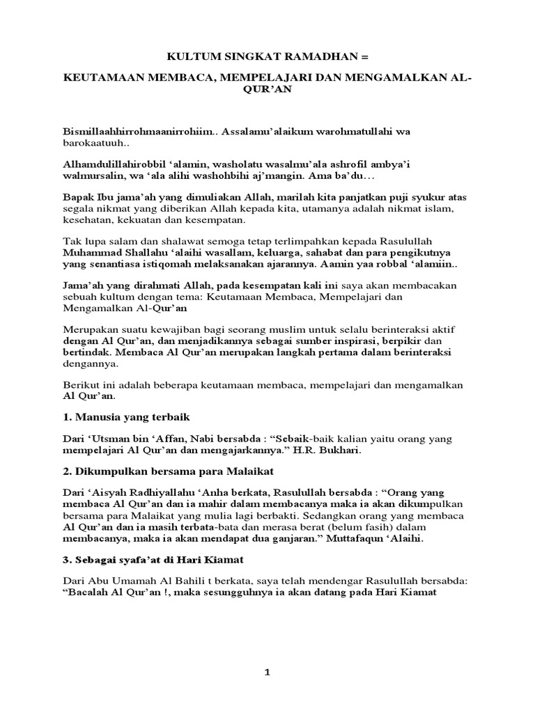 Tujuan dasar ceramah atau kultum. Link kajian full. Kultum Tarawih Pentingnya Menghafal dan Memahami Al Quran.