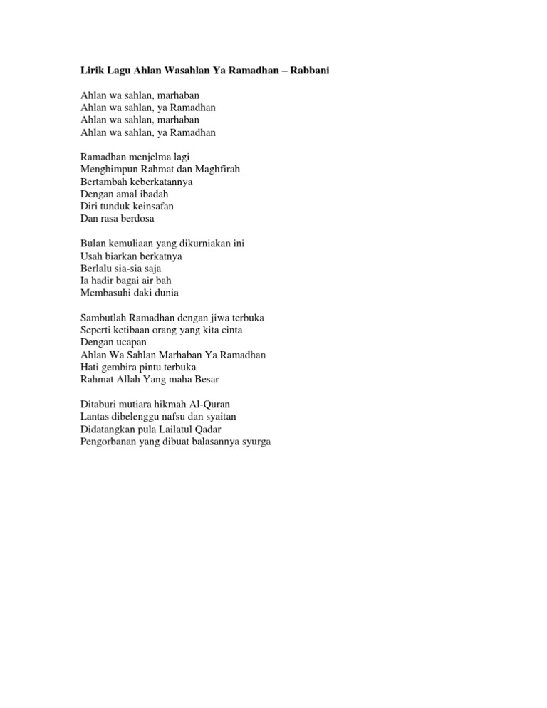 Lirik marhaban ya ramadhan dari syubbanul muslimin terbaru 2021 disertai dengan lirik arab latin dan terjemahan Artinya. Download Mp3 Marhaban Ya Ramadhan Versi Bhs.