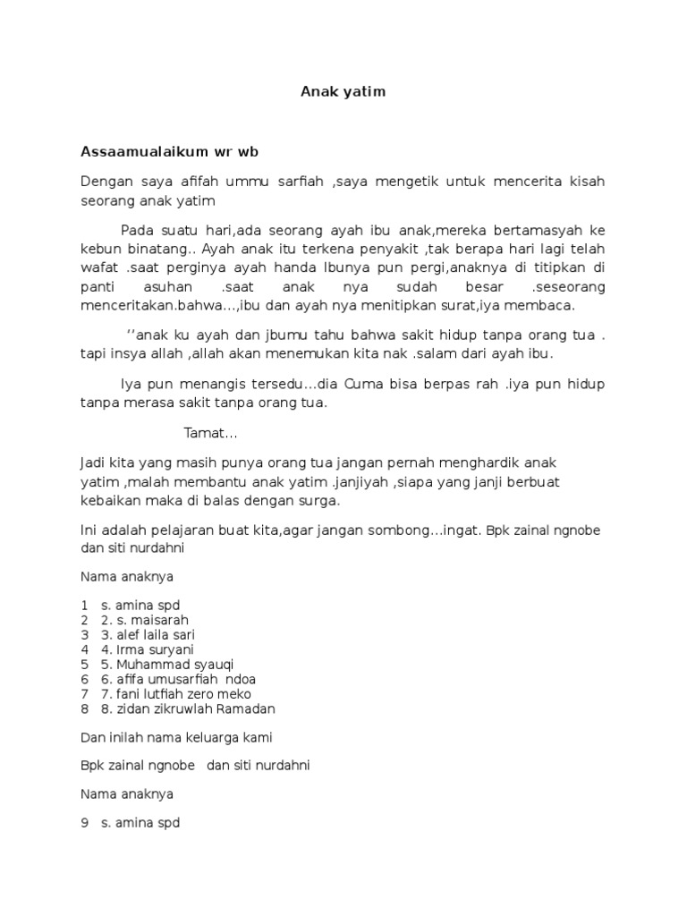 Peruri Salurkan Bantuan di Bulan Ramadan pada Masyarakat Anak Yatim di Karawang Kamis 6 Mei 2021 1624 Reporter. Dan biasanya dalam kegiatan penyantunan anak yatim tersebut juga dibutuhkan sebuah pidato sebagai salah satu rankaian acara kegiatan acara penyantunan anak yatim.