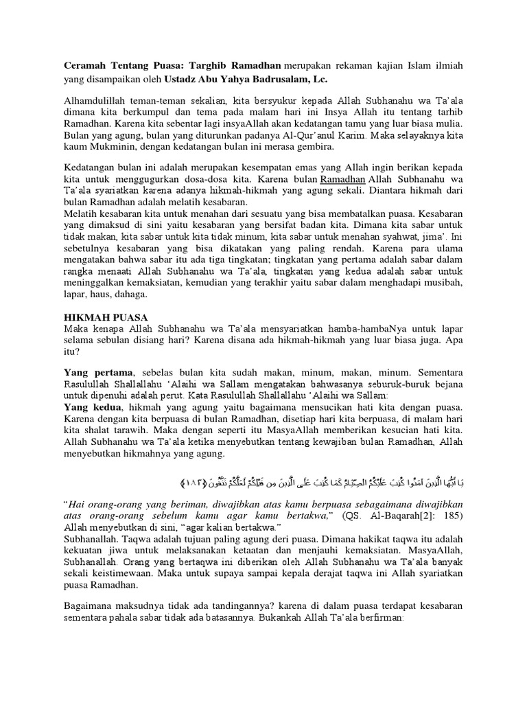 Pidato Bahasa Arab Tentang Puasa Ramadhan Etika Islam Perilaku Dan Pengalaman Beragama