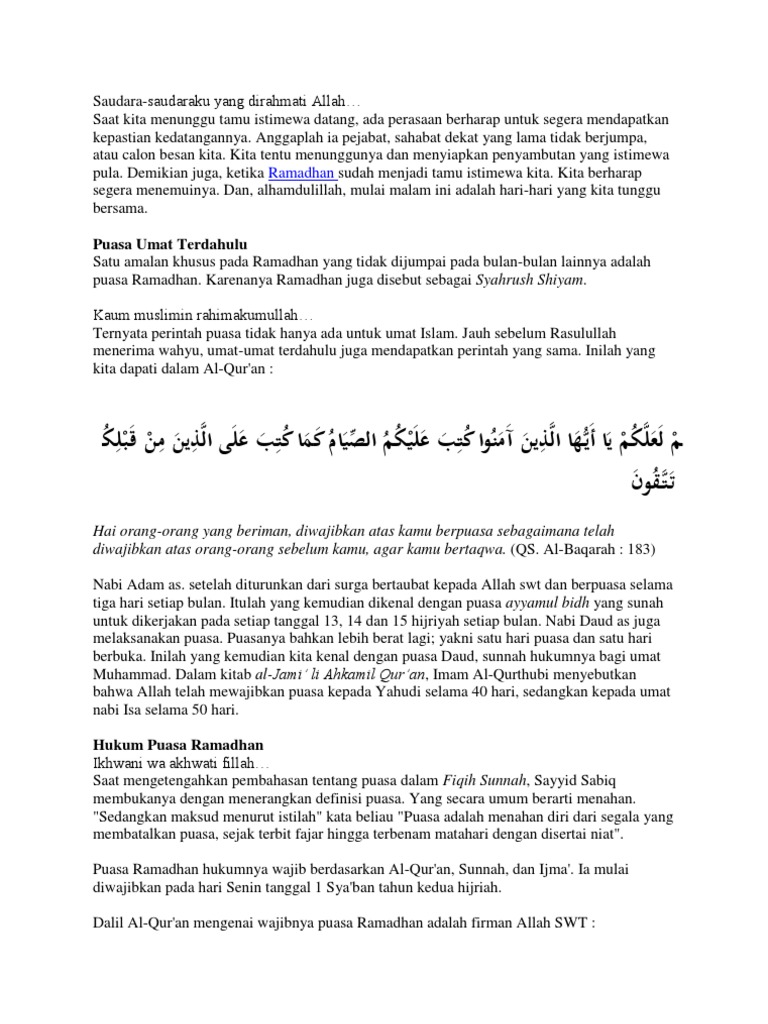Pidato Bahasa Arab Tentang Puasa Ramadhan Etika Islam Perilaku Dan Pengalaman Beragama