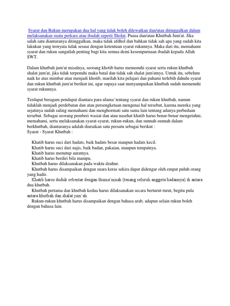 Membaca sholawat Nabi di kedua khutbah. Rukun Khutbah Jumat. Download Contoh Khutbah Jumat Sesuai Rukun Nikah Brainly PDF 800 MB - SamPDF डउनलड Contoh Khutbah Jumat Sesuai Rukun Nikah Brainly PDF secara gratis di SamPDF डटल Contoh Khutbah.