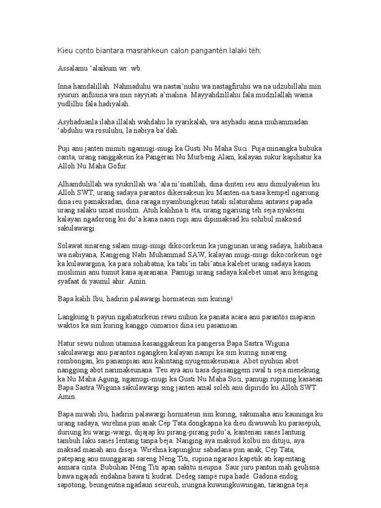 Contoh Teks Pidato Serah Terima Pengantin Dalam Bahasa Sunda Terbaru2