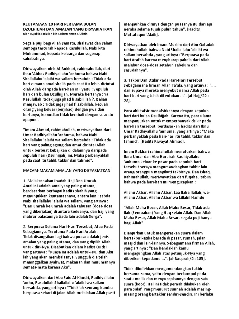 Khutbah Jumat Meraih Amalan Utama Di Sepuluh Hari Pertama Bulan Dzulhijjah Dakwah Id