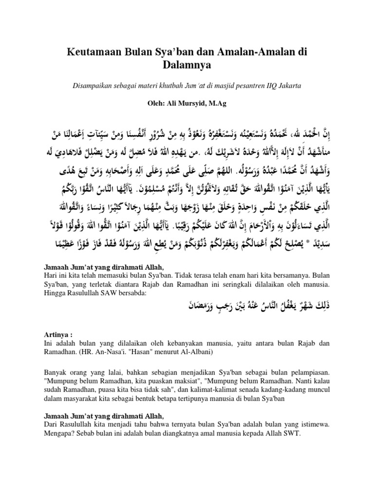 Khutbah Jum At Keutamaan Bulan Sya Ban Bersama Dakwah 1 Pdf Download Gratis
