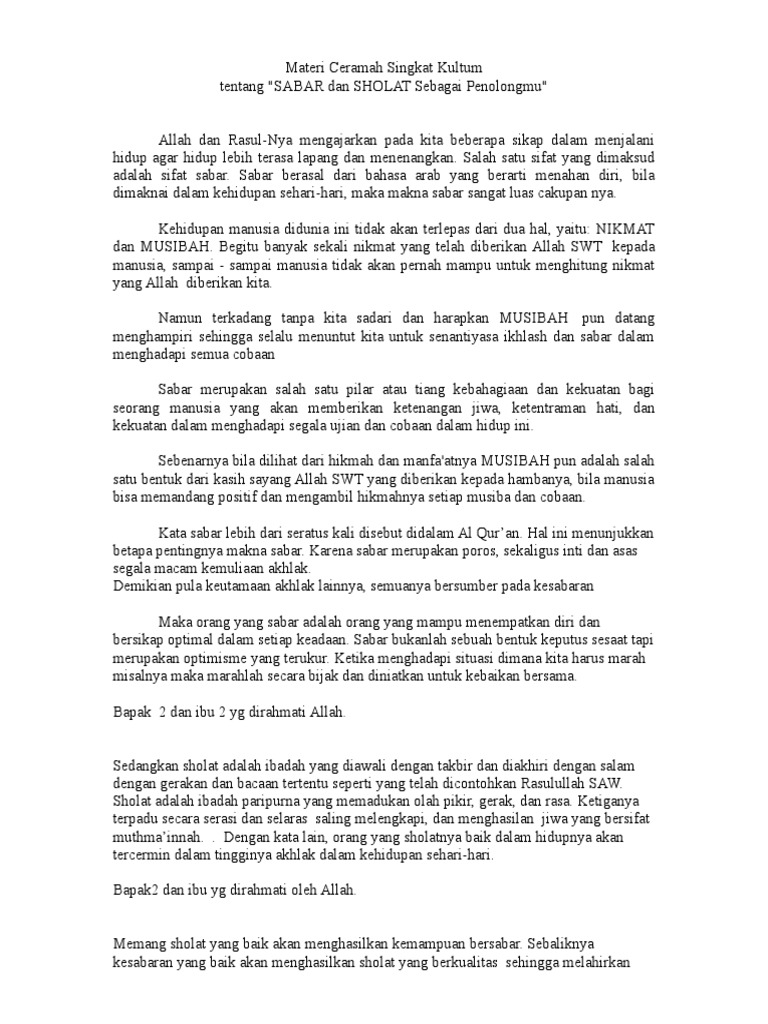 Ceramah Singkat Tentang Sabar Bahasa Sunda Kumpulan Teks Ceramah Kultum Puisi Pantun Dll