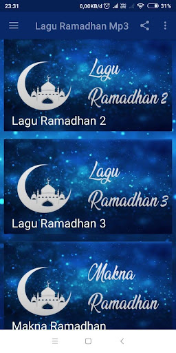 Lagu Ramadhan Mp3 adalah aplikasi yang berisi kumpulan lagu-lagu ramadhan 2020 dan lagu-lagu ini dapat diputar secara offline tanpa harus diunduh lagi Daftar Lagu.