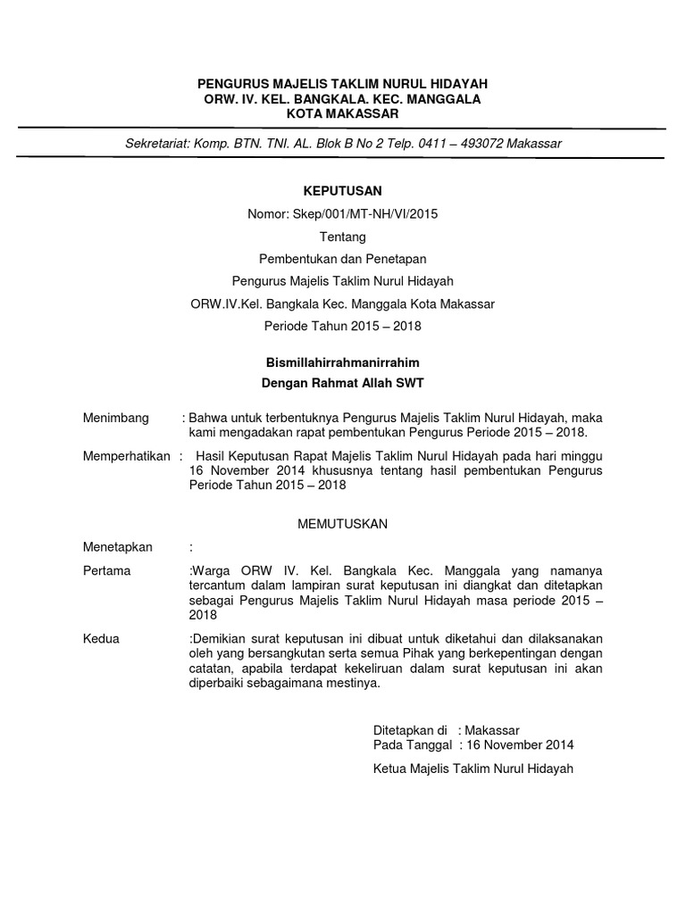 Contoh Sk Susunan Pengurus Majelis Taklim Dunia Sosial