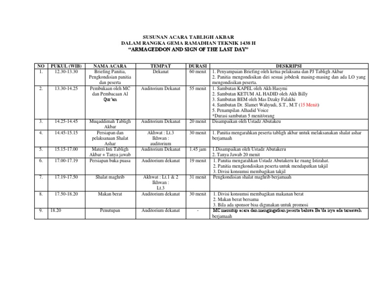 Susunan Acara Silaturrahmi Dan Tabligh Akbar Majlis Ta Docx