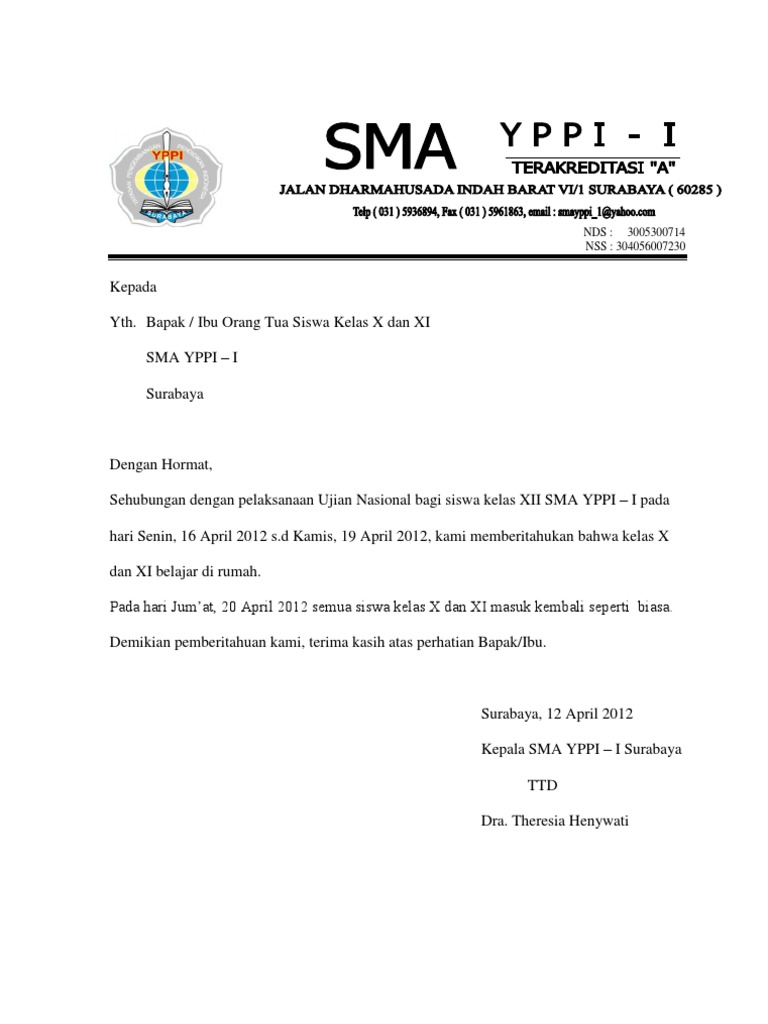 Contoh Surat Edaran Libur Sekolah Untuk Wali Murid Contoh Lif Co Id