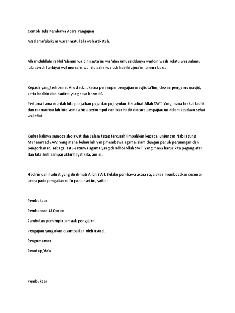Contoh Teks Pembawa Acara Pengajian Yang Sederhana Dan Mudah Dipahami Youtube