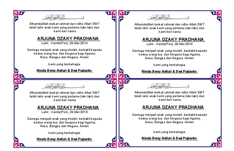 Contoh Kartu Ucapan Tasyakuran Aqiqah Versi Ms Word Gratis Siap Pakai