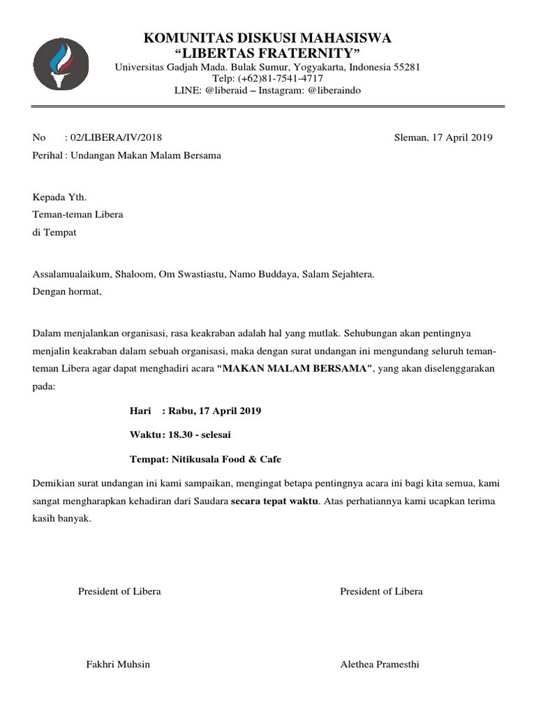 Contoh surat undangan. Contoh Surat Undangan Makan Bersama have a graphic associated with the other. Seseorang yang ingin mengadakan acara halal bihalal tentu saja harus membuat sebuah surat terlebih dahulu yang disebut dengan undangan halal bihalal.