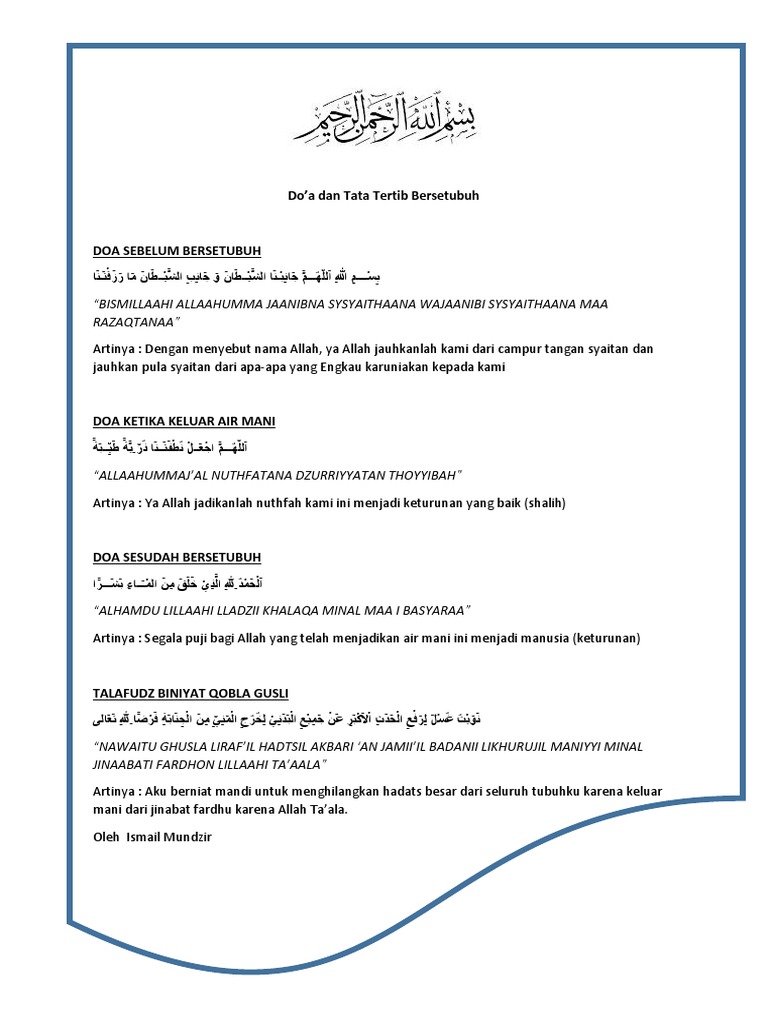 Doa Ketika Keluar Air Mani Dan Do A Tata Tertib Bersetubuh