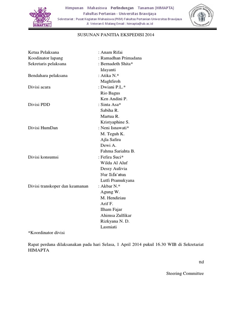 Susunan Panitia Ekspedisi 2014