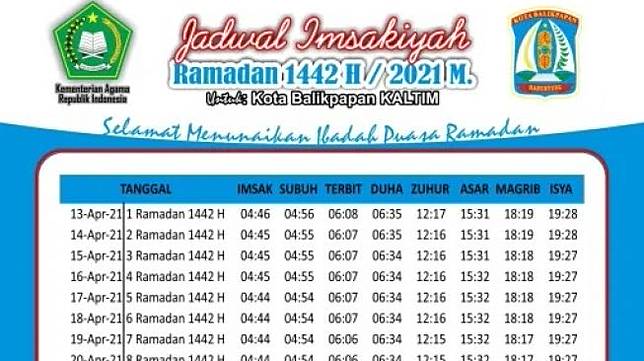 Jadwal Imsakiyah Dan Buka Puasa Balikpapan Rabu 28 April 2021 Suara Com Line Today