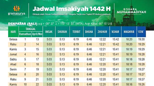 Jadwal Imsakiyah Ramadhan 2021 Denpasar Bali Versi Muhammadiyah Suara Bali