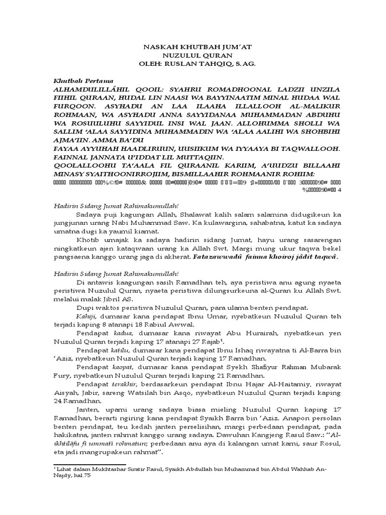 Khutbah Jumat Nuzulul Qur'an Dan Lailatul Qadar