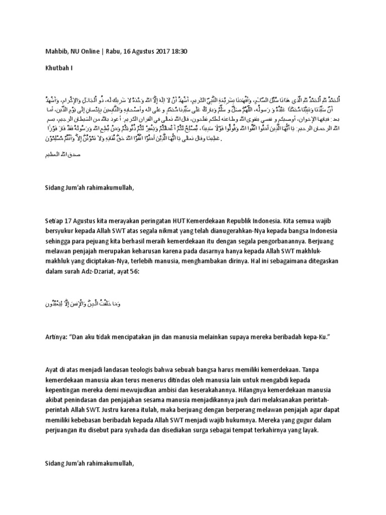Khutbah Jumat 17 Agustus 2018 Nu Online Gambar Ngetrend Dan Viral