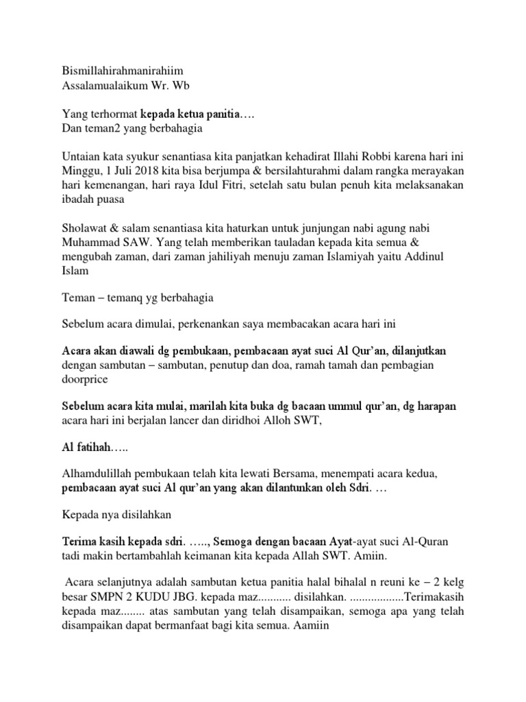 Doc Teks Mc Acara Halal Bihalal Riani Prihatiningsih Academia Edu