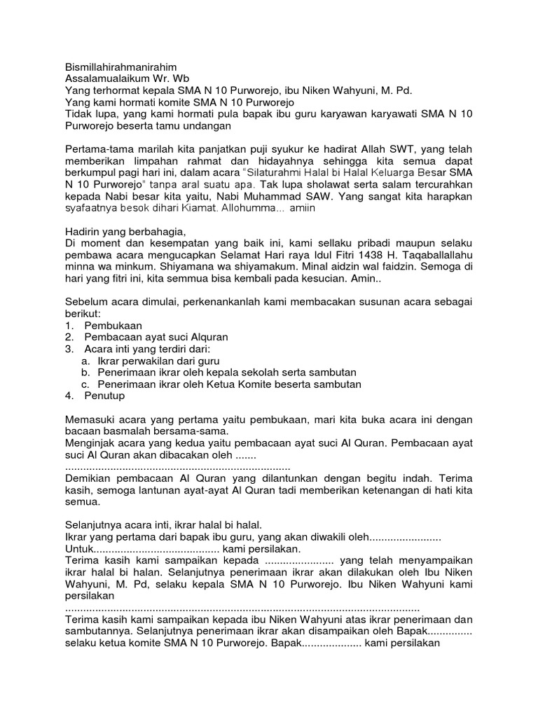 Teks mc acara halal bihalal. Download Full PDF Package. Posting Lebih Baru Posting Lama Beranda.