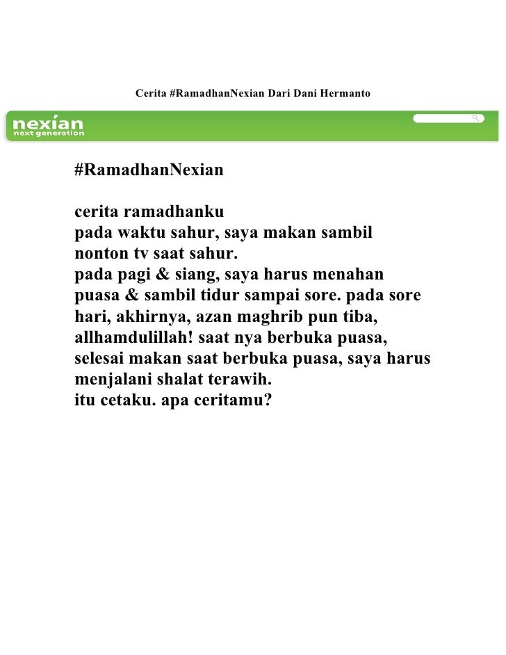 Karena itu barangsiapa di antara kalian hadir di bulan itu maka hendaklah ia berpuasa QS. Download Mengarang Cerita Tentang Bulan Ramadhan PDF 1700 MB - SamPDF SamPDF sebelumnya. Mumtaaz Qadhifa Lolos Moderasi Pada.