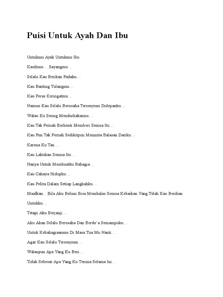 Kumpulan Contoh Puisi Ayah Dan Ibu Contoh Kumpulan Puisi Baru Terbaik