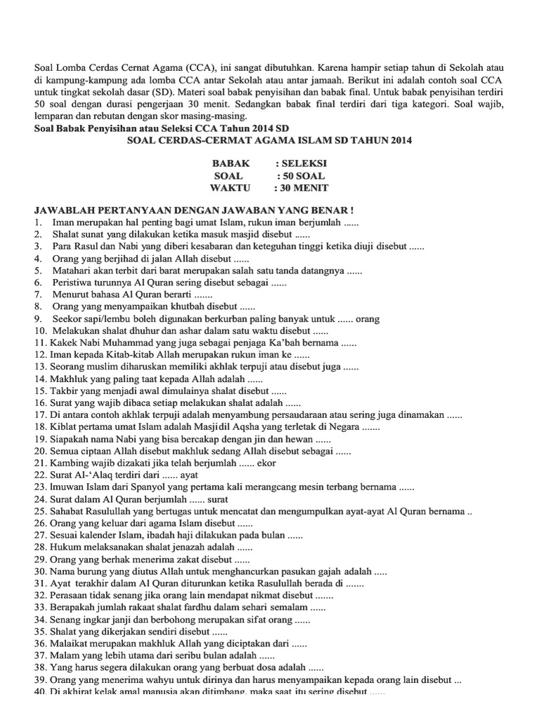 Soal Dan Jawaban Cerdas Cermat Agama Islam. Buku Bse Kelas 05 Sd Pendidikan Agama Islam Dan Budi Pekerti Guru 2017. Berikut ini adalah kumpulan soal-soal cerdas cermat agama Islam beserta jawabannya.