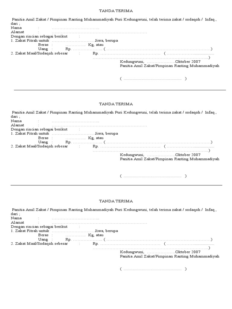 Tanda terima zakat fitrah. Dengan rincian sebagai berikut. Doa ini bertujuan sebagai tanda syukur kepada Allah juga sebagai tanda terima kasih kepada si pemberi zakat. Ini saya kasih contoh formulir zakat fitrah amal dan sedekah.