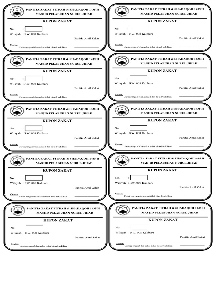 Kupon Pembagian Zakat Fitrah 1435 H