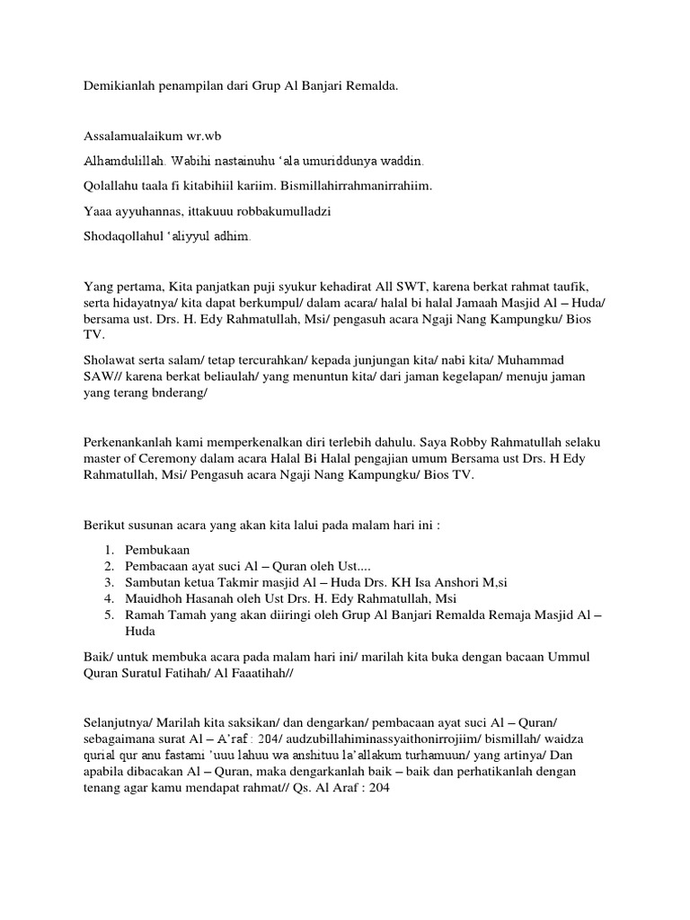 Doc Teks Mc Acara Halal Bihalal Riani Prihatiningsih Academia Edu