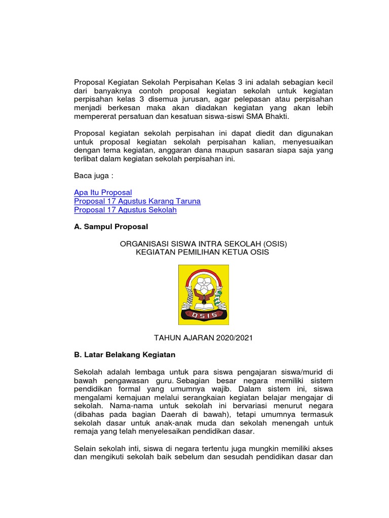Sebagai salah satu upaya pokok pendidikan ini harus dilaksanakan sebaik mungkin. Contoh pidato perpisahan sekolah berbagai macam tema untuk tk sd smp sma wali murid mahasiswa pkl dll. Tentunya unsur proposal ini tidak kaku harus dimiliki karena hal ini tergantung dari jenis proposal.