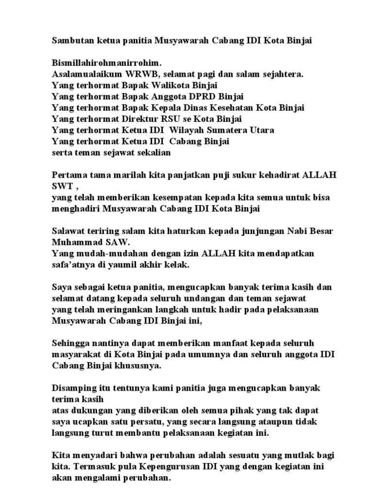 Contoh Pidato Sambutan Ketua Panitia Docx