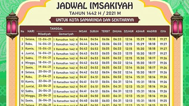 Jadwal Imsakiyah Dan Buka Puasa Samarinda Senin 10 Mei 2021