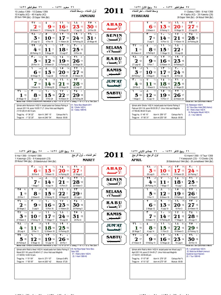 Kalender 2011 Jawa lengkap dengan hari libur nasional dan cuti bersama. Sistem kalender pra-Islam di Arab Sebelum datangnya Islam di tanah Arab dikenal sistem kalender berbasis campuran antara Bulan. 1442 - 1443 H.