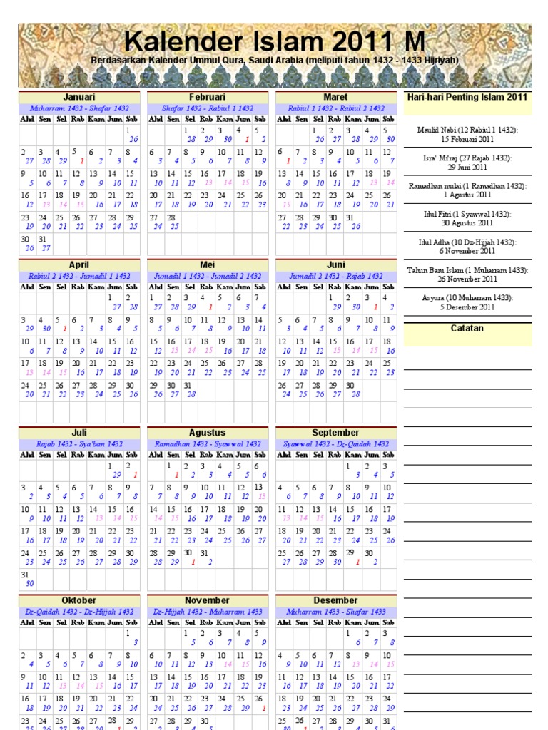 Kalender 2011 Dan Kalender Islam 1432 H