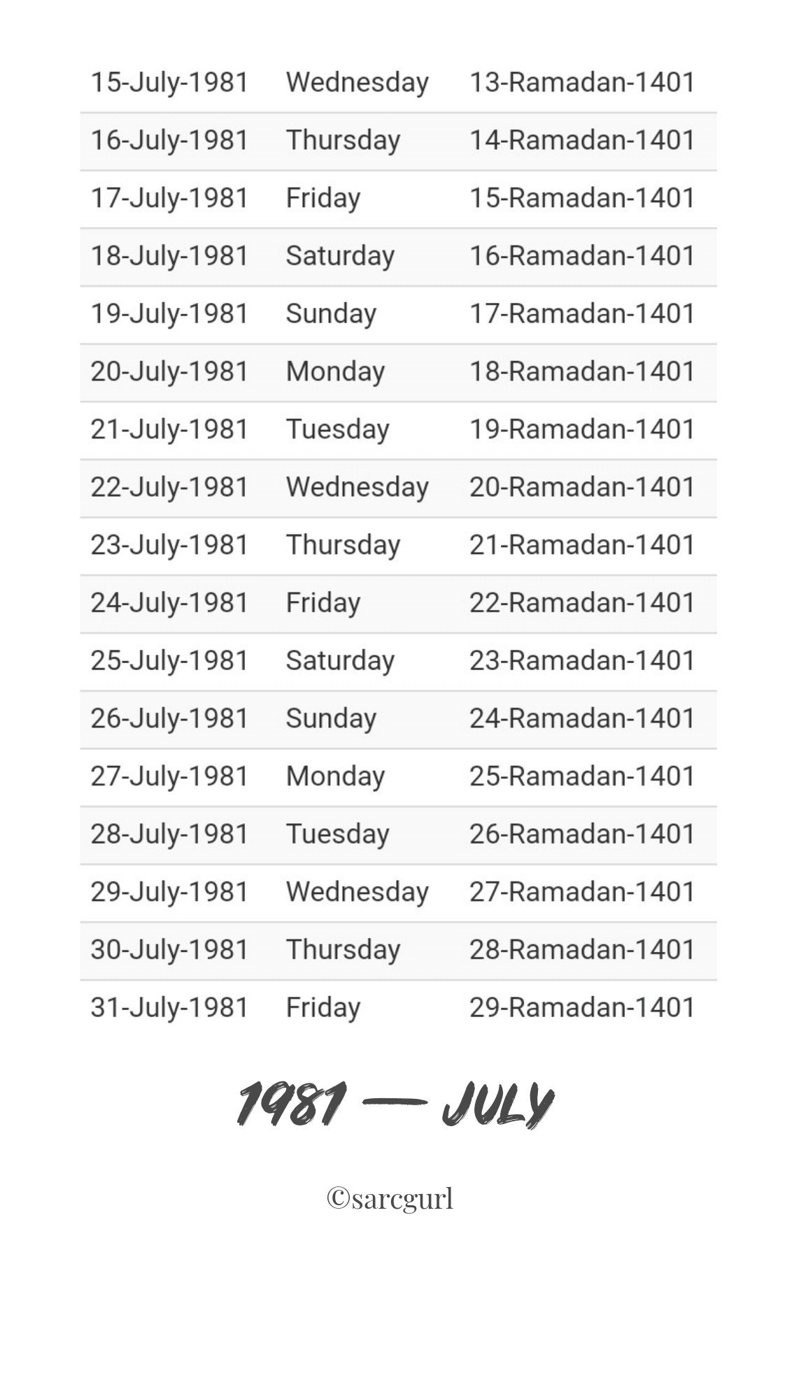 1 Rabiul Tsani 1401. 26 Rabiul Awwal 1401.