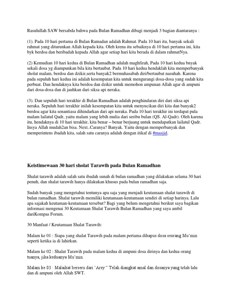 Menurut pemahaman Syekh Maulana Muhammad Zakariyya bahwa bulan Ramadhan dibagi menjadi tiga yaitu rahmat maghfirah dan kebebasan dari api neraka. 7 hari Memuji Tuhan 11-17 January 2021 Minggu kedua. Bulan Ramadhan terbagi menjadi 3 bagian sebagaimana diterangkan dalam hadits di atas.