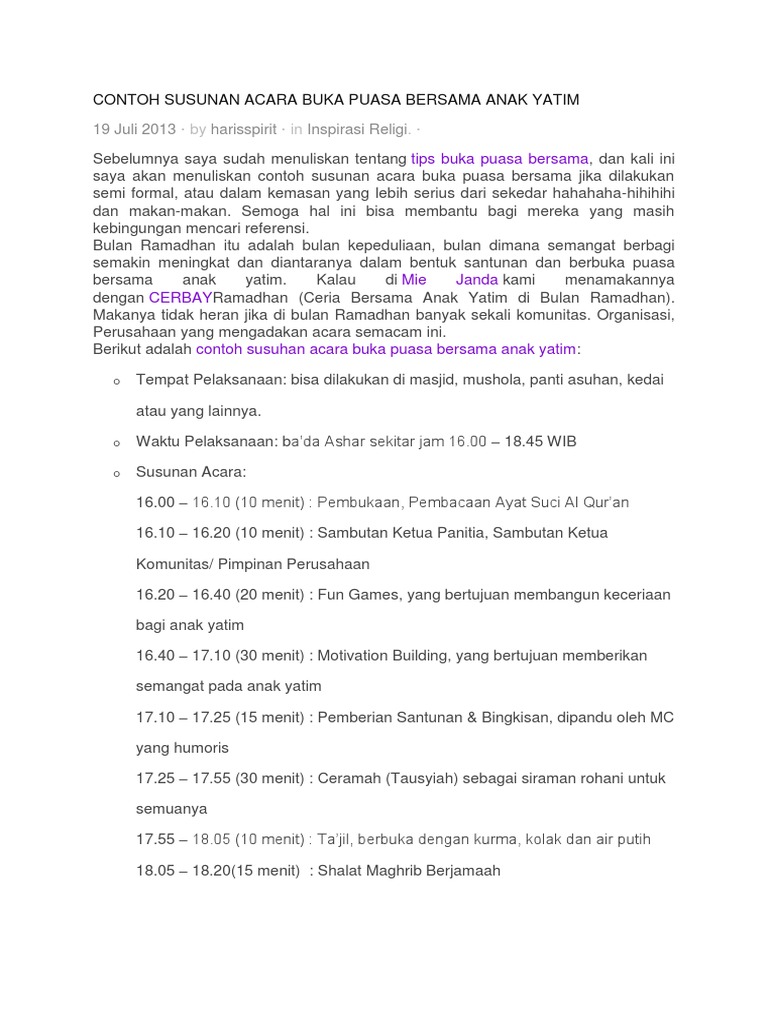 Contoh Susunan Acara Buka Puasa Bersama Anak Yatim Dapatkan Contoh